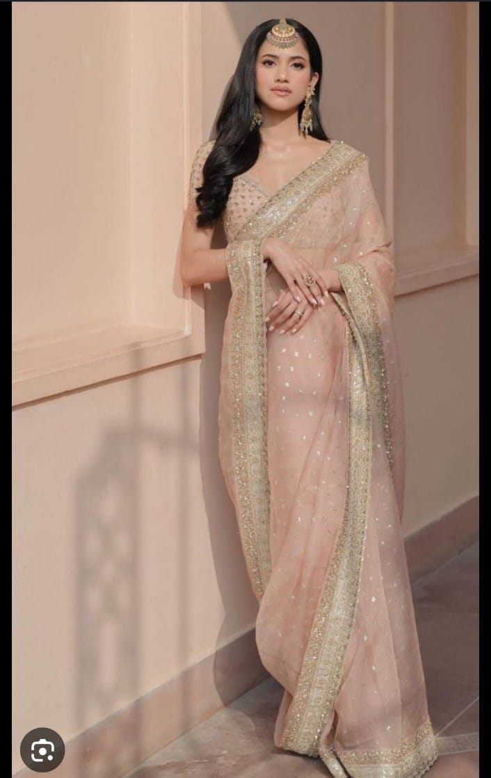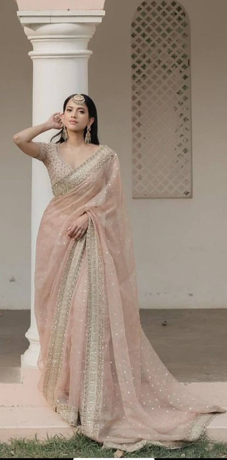 Organza saree is a graceful and ethereal drape crafted from delicate, transparent organza fabric. Known for its lightweight feel and stiff structure, the saree holds its shape beautifully, giving a regal and voluminous appearance. The fabric’s natural sheen adds a touch of sophistication, while its airy texture makes it perfect for festive events, weddings, and celebrations.